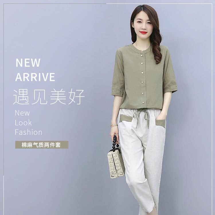 5分钟前休闲裤女棉麻女装套装女2026夏季新款优雅洋气时尚气质修身小个子亚麻两件套